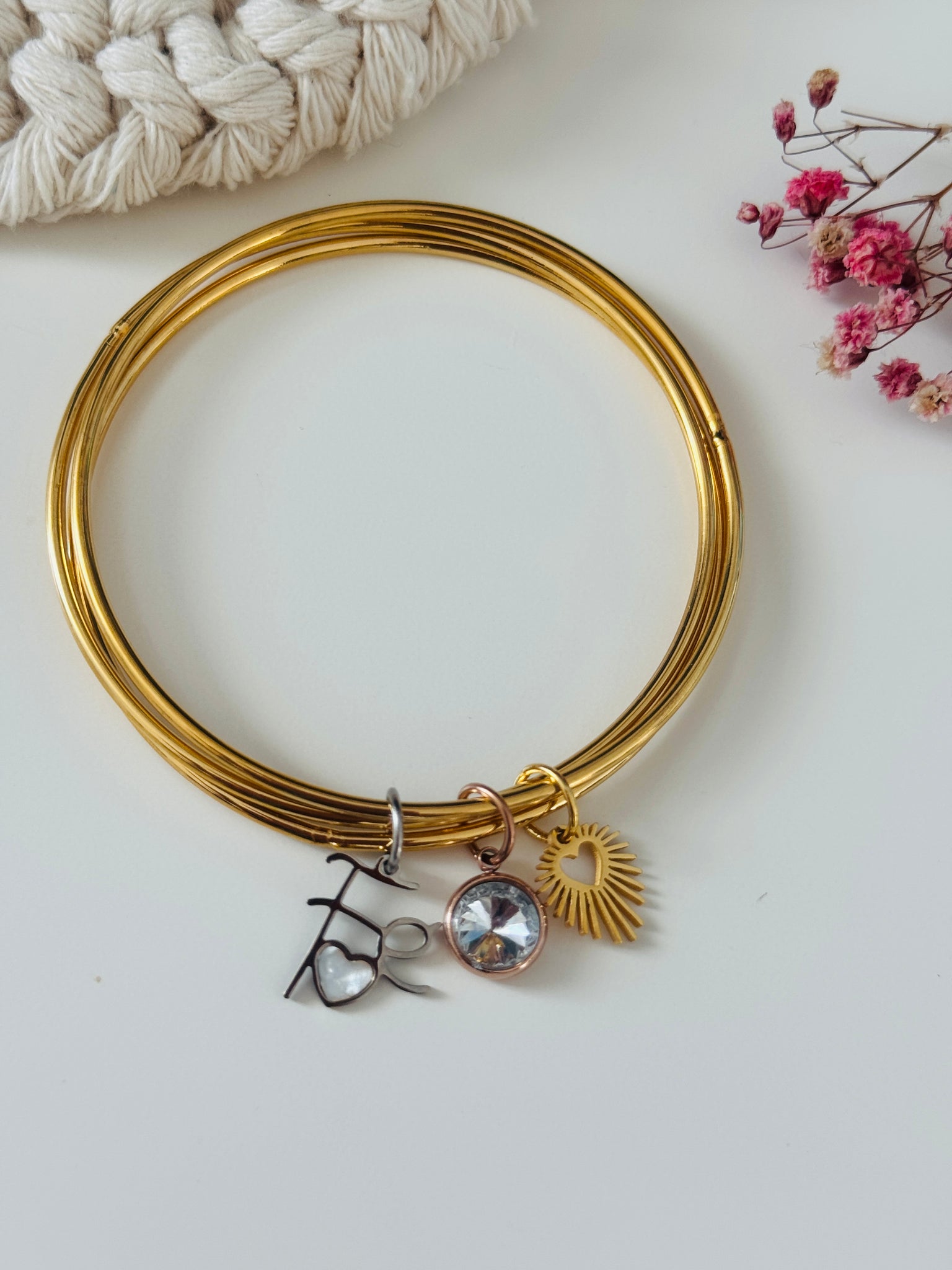 Hermosa pulsera (son 3 juntas) en donde cada charm es de un tono diferente: dorado, plata y oro rosado