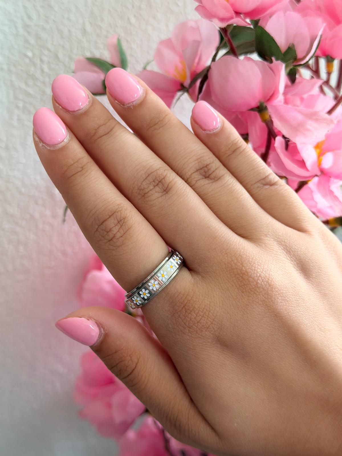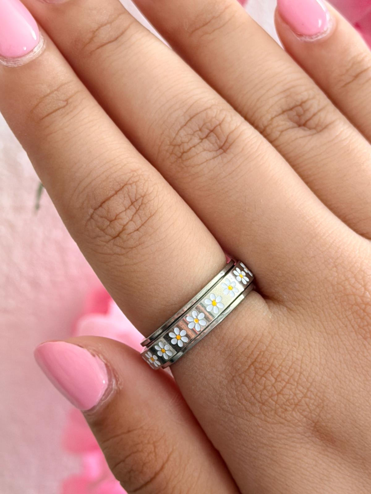 Sortija anti ansiedad en acero con detalles de flores grabados. Este anillo giratorio te permite dar vueltas suavemente para aliviar el estrés y la ansiedad en cualquier momento del día. Su diseño elegante combina funcionalidad con estética, presentando un acabado pulido que resalta los motivos florales. Cómodo de usar, resistente y discreto, es el complemento perfecto para quienes buscan una forma práctica de encontrar calma y enfoque durante momentos de tensión. Tamaño 8